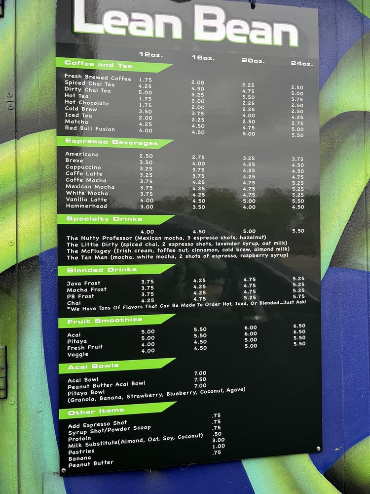 Welcome to The Lean Bean, a hidden gem nestled at 9181 Mission Gorge Rd, Santee, CA. This drive-thru spot is perfect for those on the go, offering a vibrant menu bursting with flavor and health. Specializing in both acai bowls and a variety of specialty drinks, it's no surprise that loyal customers rave about their delicious offerings.